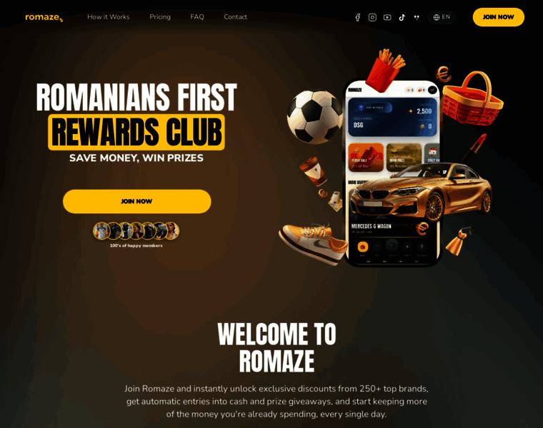 Join Romaze, Romania's first rewards club! Access exclusive discounts from 100+ brands and enter monthly giveaways to win cars, cash, and trips. Start saving and winning today!