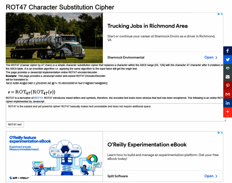 ROT47 Encode/Decode, ROT47 Character Substitution Cipher with API