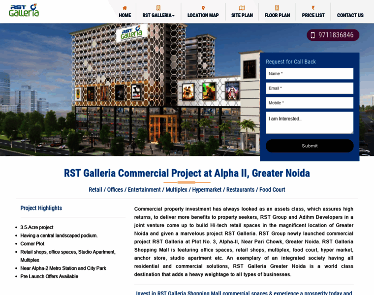 RST Group is presenting commercial project RST Galleria at Alpha II, Greater Noida, offers retail shops, offices, studio apartments, multiplex etc. with best features.