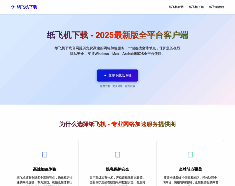 纸飞机下载官网提供2025最新版纸飞机客户端下载,支持Windows、Mac、Android和iOS全平台,免费高速、安全加密,一键连接全球网络。