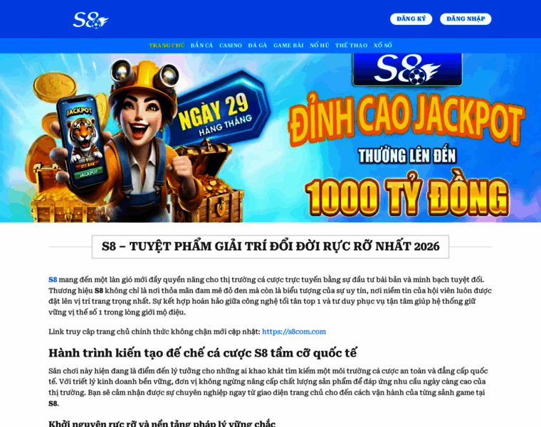 S8 mang đến một làn gió mới đầy quyền năng cho thị trường cá cược trực tuyến bằng sự đầu tư bài bản và minh bạch tuyệt đối. Thương hiệu S8 không chỉ là nơi