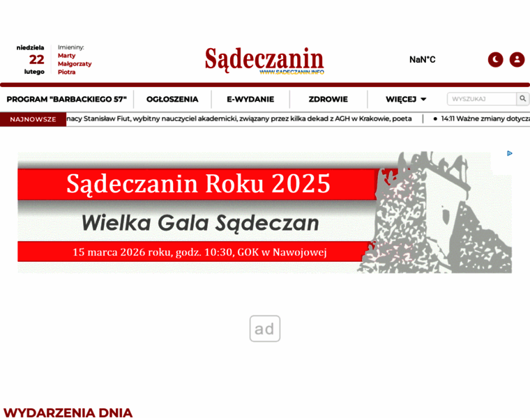 Sądeczanin.info to wiadomości z Nowego Sącza, informacje o Nowym Sączu, ogłoszenia Nowy Sącz, praca Nowy Sącz, pogoda Nowy Sącz, kino Nowy Sącz.
