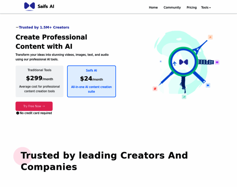 Transform your ideas into stunning content with Saifs AI's suite of professional AI tools. Create videos, images, text, and audio effortlessly.