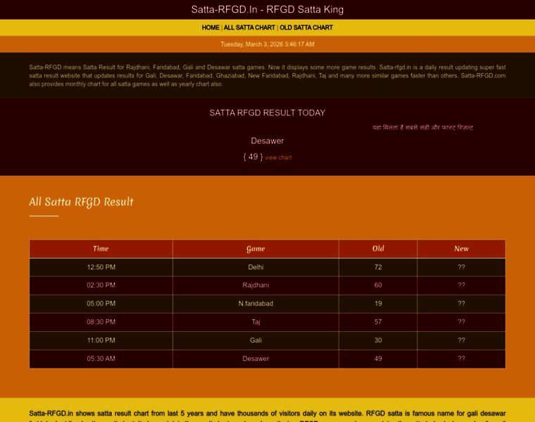 Satta-RFGD.In - Daily fast result for gali, desawer, rajdhani, taj, new faridabad, Delhi satta games and many more game results live online.