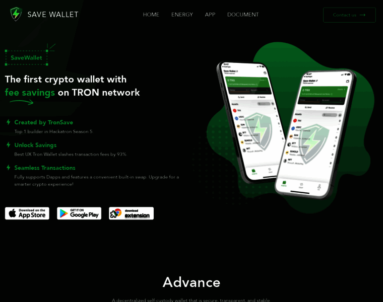 The first crypto wallet withfee savings on TRON network