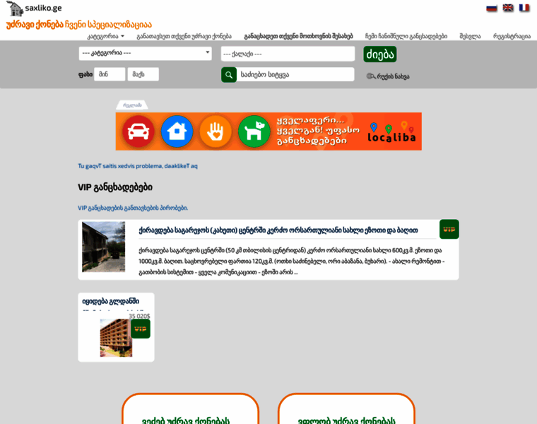 განცხადებები უძრავი ქონება - saxliko.ge, უფასო განცხადებების საიტი საქართველოში
