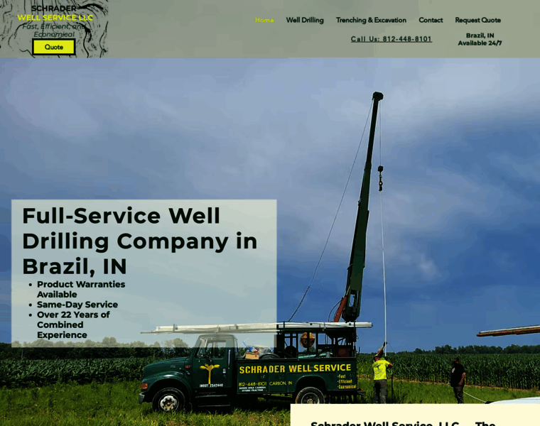 Schrader Well Service is the leading well drilling company in Brazil, Indiana. With over 22 years of experience we offer well drilling, pumping system installation, well system repair and maintenance, well pump replacement and trenching and excavation. Serving Brazil, Terre Haute and the surround areas. Call for a Free no obligation estimate today!