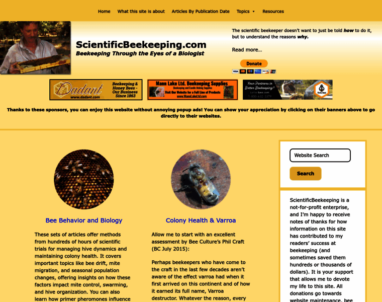 Scientificbeekeeping.com Homepage Change Through The Years