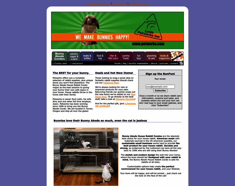 Rabbit supplies and unique House Rabbit Condos (not cages!) by Petwerks are for rabbit owners who want the best in US made products for their companion animal.