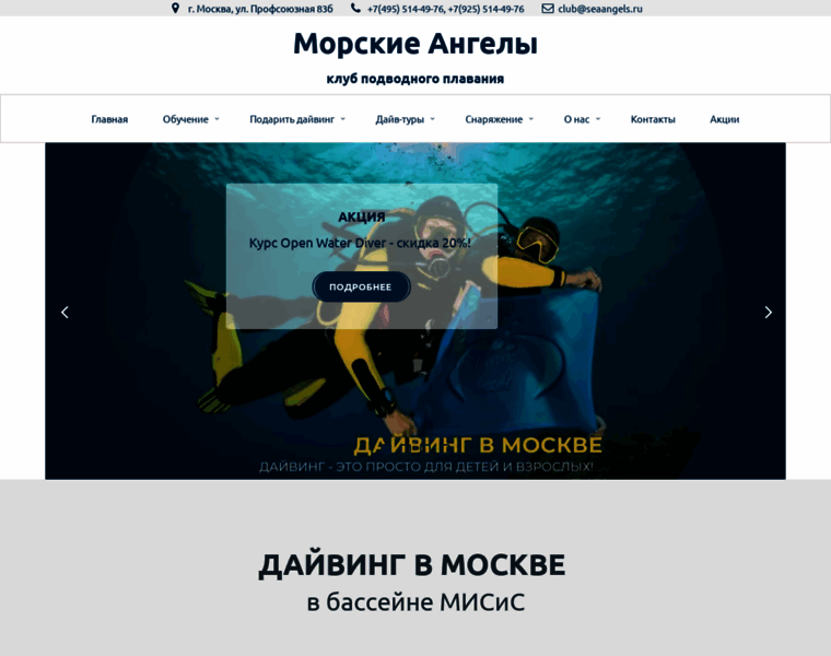 Дайвинг в Москве | Клуб подводного плавания Морские Ангелы