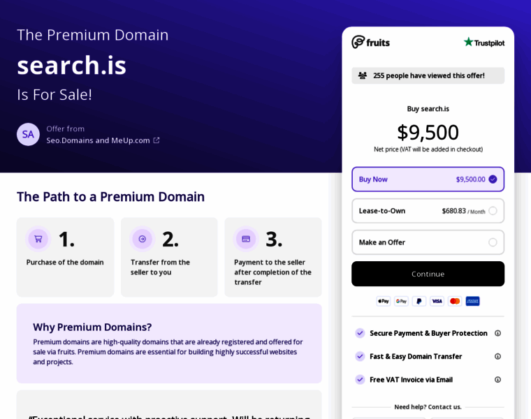 The premium domain search.is is for sale on fruits.co. Secure the domain now and start your online success story. Safe payment and quick transfer are guaranteed.