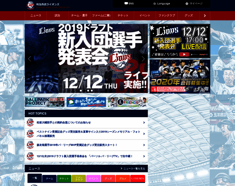 プロ野球・埼玉西武ライオンズオフィシャルサイトです。試合や選手はもちろん、チケットやイベント、ファンクラブに至るまで球団オフィシャルならではの公式情報をファンのみなさまに提供します。