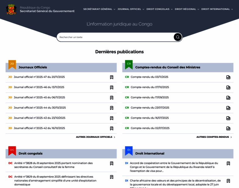 SGG Congo, Secrétariat Général du Gouvernement du Congo : Journaux officiels.