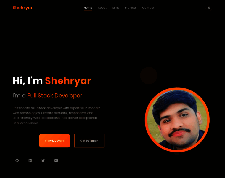 Shehryar - Professional Full Stack Developer Portfolio. Experienced in web development, JavaScript, React, Node.js and modern web technologies.