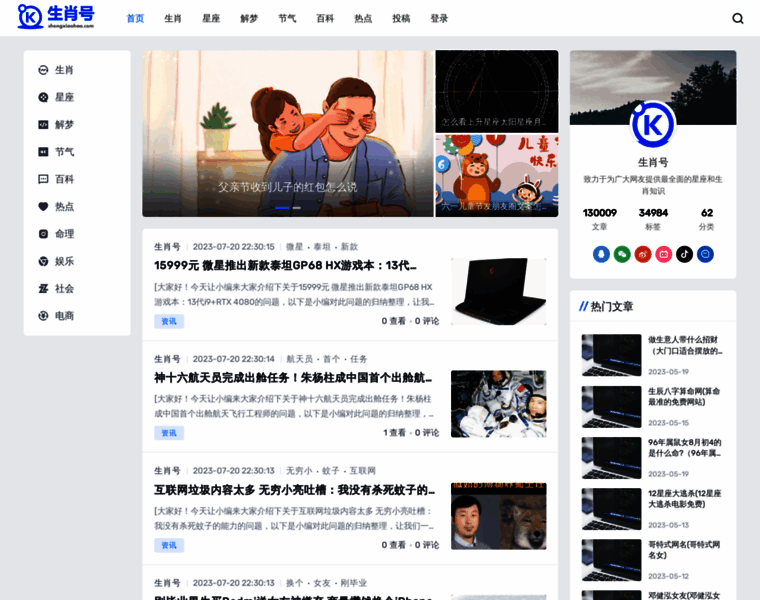 生肖号是综合性专业的星座网站,提供十二星座知识、星座个性分析、星座开运方法、星座运势、星座配对、查询、塔罗牌、在线算命、风水、生肖、星相命理及实时热门新闻相关内容,致力于为广大网友提供最全面的星座信息。
