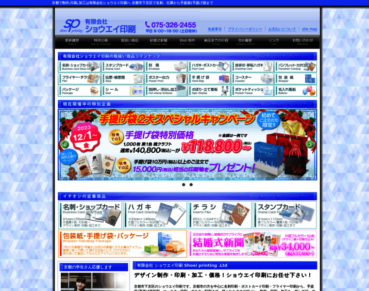 有限会社ショウエイ印刷ホームページです。京都市下京区で名刺印刷・ポストカード印刷から手提袋|手提げ袋印刷・伝票印刷・コースター印刷等、デザイン制作から印刷まで一括して行っております。京都で制作,印刷,加工は有限会社ショウエイ印刷へ。