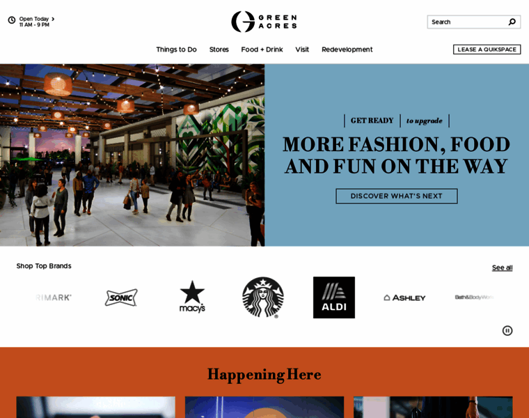 Located in Valley Stream, NY - Green Acres Mall is a shopping center featuring a large variety of stores including H&M, Uniqlo, Primark, Macy's, Hollister, Old Navy, Foot Locker, Victoria's Secret, Pandora, Home Goods and Dick’s Sporting Goods, and restaurants like BJ'S Restaurant Brewhouse, Olive Garden, Red Lobster, Buffalo Wild Wings, Applebee's, T.G.I. Fridays, Chipotle, Panera Bread, and Chuck E Cheese.