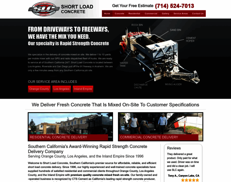 Short Load Concrete, since 1996 the largest producer of rapid strength/set concrete delivery to Los Angeles County, Orange County, Riverside & Inland Empire. Custom concrete mixed on-site. (XPSI)