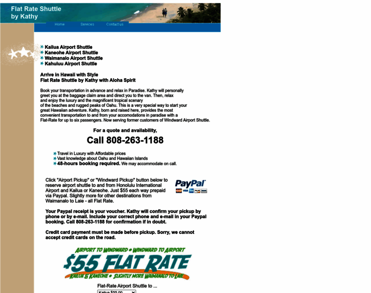 Arrive in Hawaii with Style! Flat Rate Shuttle by Kathy with Aloha Spirit. Book your transportation in advance and relax in Paradise. Now serving former customers of Windward Airport Shuttle.