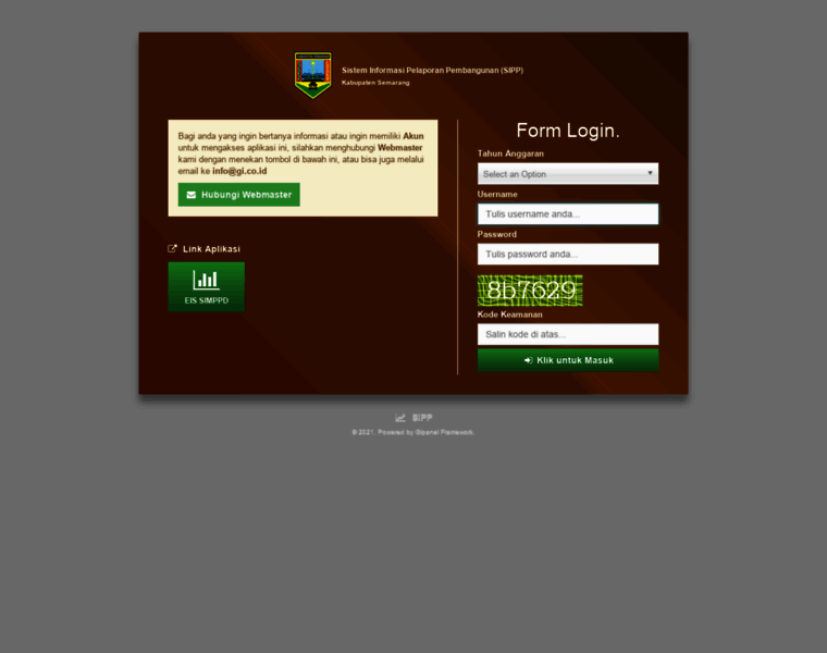 Login | Sistem Informasi Pelaporan Pembangunan (SIPP) - Kabupaten Semarang