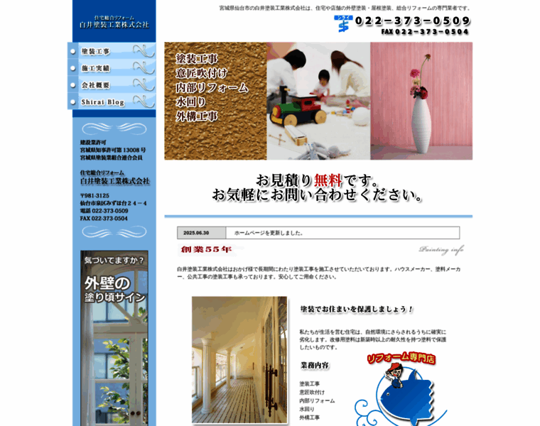 宮城県仙台市の白井塗装工業株式会社は、住宅や店舗の外壁塗装・屋根塗装、総合リフォームの専門業者です。