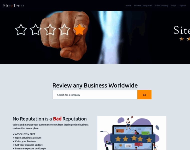 Review any business worldwide. 5 stars reviews for good trusted websites. Submit your business to site to trust to increase your google trustworthy.