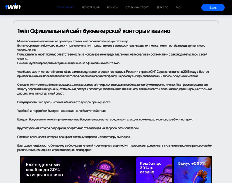 1win Официальный сайт БК ➤ Рабочее зеркало 1вин сегодня для ставок и казино