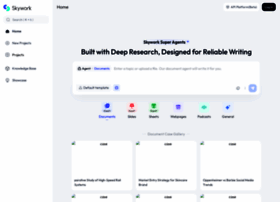Skywork - Skywork turns simple input into multimodal content - docs, slides, sheets with deep research, podcasts & webpages. Perfect for analysts creating reports, educators designing slides, or parents making audiobooks. If you can imagine it, Skywork realizes it.