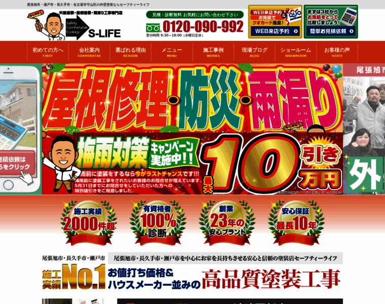 【S-LIFE公式サイト】尾張旭市を中心に瀬戸市、長久手市での雨漏り修理、外壁塗装・屋根塗装なら当社にお任せ!一級塗装技能士在籍で評判が高い塗装専門店!無料見積、外壁劣化・雨漏診断実施中