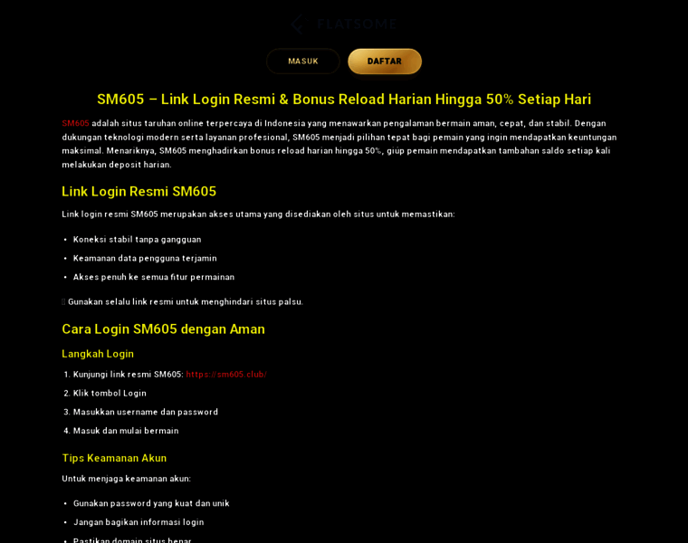 SM605 - Link Login Resmi & Bonus Reload Harian Hingga 50% Setiap Hari