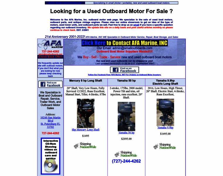 AFA Marine used outboards for sale. Specializing in 2 and 4-stroke used outboard motors & parts such as Johnson, Yamaha, Evinrude and Mercury Outboards