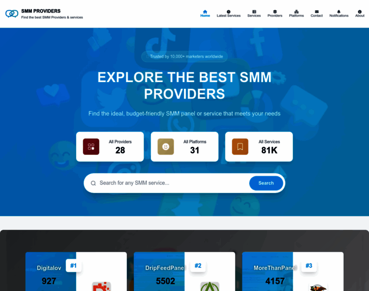 Welcome to SMMPROVIDERS.net - your go-to destination for all things Social Media Marketing (SMM) providers! Our platform offers comprehensive reviews, analysis, and updated insights on various SMM providers. We're committed to providing accurate data to empower users in making informed decisions when selecting SMM services. Explore our database for information on provider services, compare offerings, and find the perfect fit for your social media...