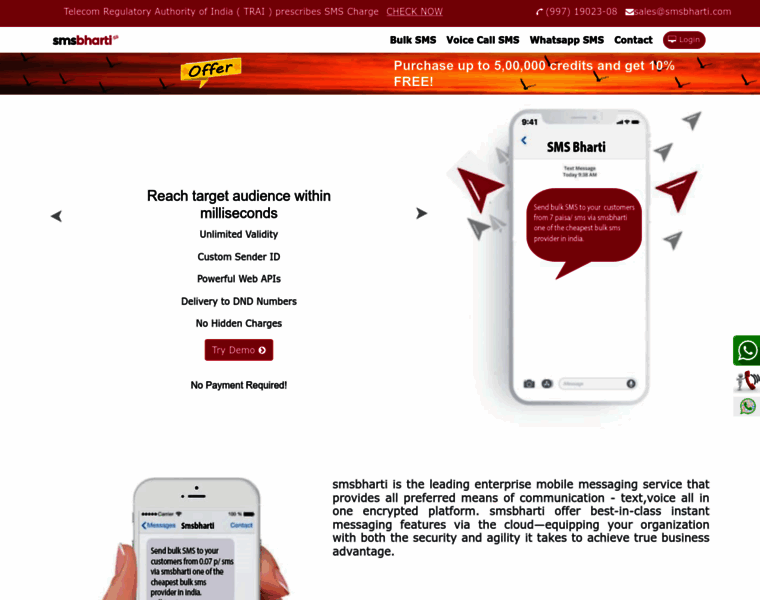 Sms Bharti: India #1 Bulk SMS Service | 200% Money back gurantee on Bulk SMS Online
