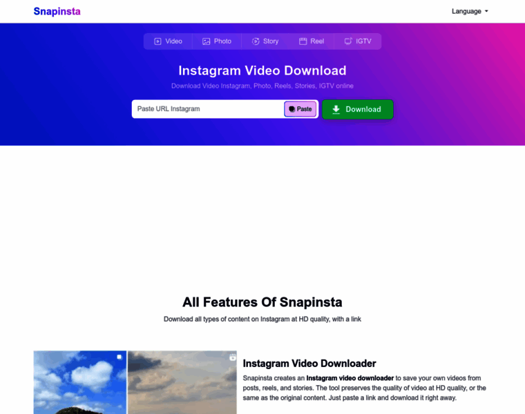 Download Instagram Video, Photo, Reels, IGTV Online Free - Snapinsta