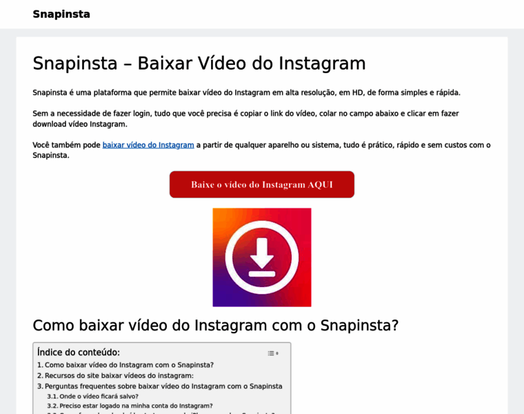 Snapinsta é um website que permite baixar vídeos do Instagram de forma bem simplificada. Aprenda aqui como salvar vídeos do Insta.