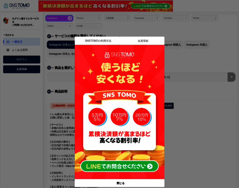 SNSTOMO - インスタグラムやXなどSNSのフォロワー・いいねを増やしましよう。