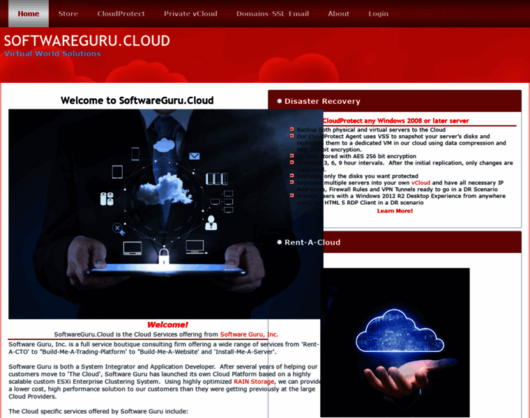 Welcome to SoftwareGuru.Cloud. Software Guru's Virtual Cloud offering. Rent your own private Virtual Cloud with the resources you need on a monthly, quarterly, semi-annual or annual basis with no commitment.
