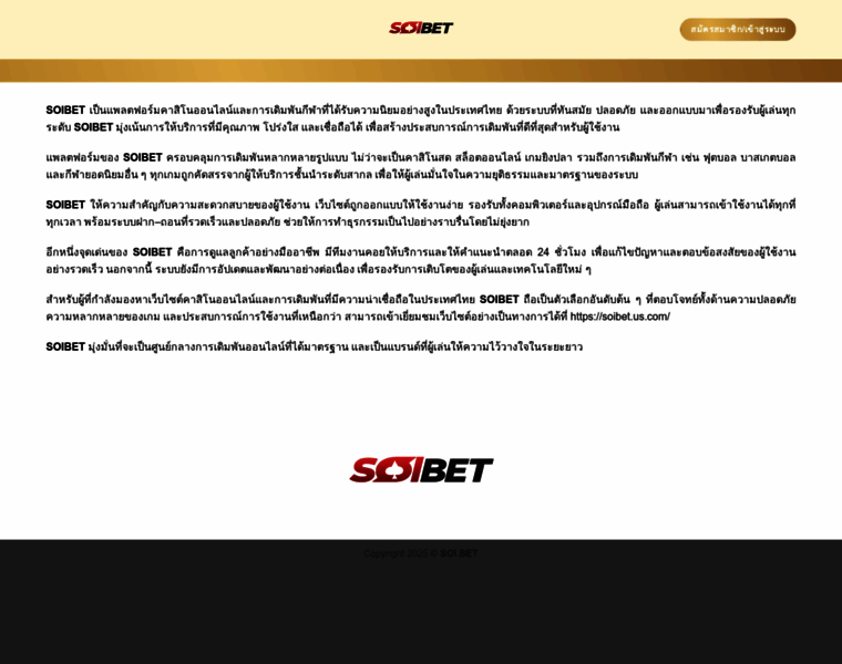 SOIBET เป็นแพลตฟอร์มคาสิโนออนไลน์และการเดิมพันกีฬาที่ได้รับความนิยมอย่างสูงในประเทศไทย ด้วยระบบที่ทันสมัย ปลอดภัย และออกแบบมาเพื่อรองรับผู้เล่นทุกระดับ SOIBET