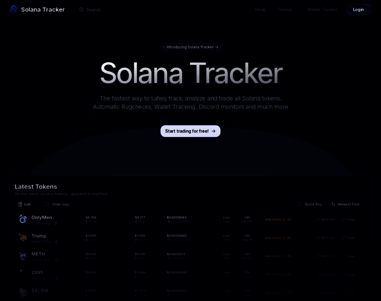 Solana Tracker is the best place to track and swap all Solana (meme) coins. Find the newest coins, check the risk score and protect against rug pulls.