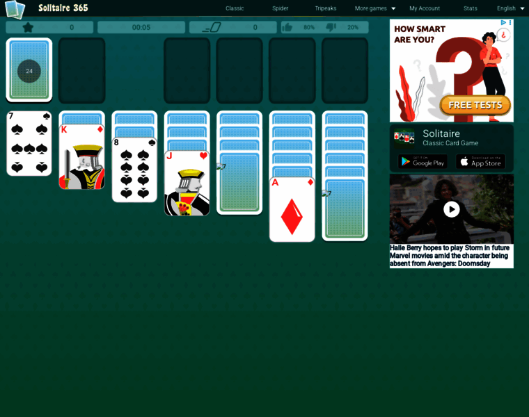 Play Solitaire online. No download or registration needed, mobile friendly and fast. Play Klondike Solitaire, the classic version, for free.