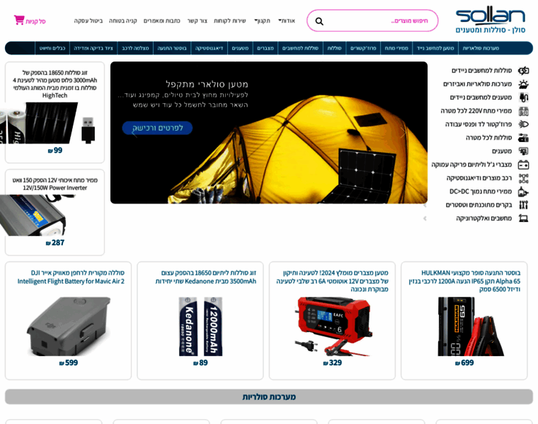 אתר סוללות ומטענים לניידים המקצועי והגדול בישראל! סולן מומחים במערכות סולאריות, ממירי מתח, מצברי ג'ל פריקה עמוקה, בוסטר התנעה, מצלמות רכב, במחירים שווים.