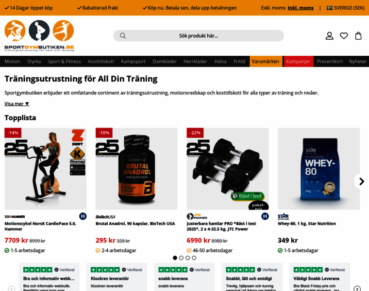 Köp träningsutrustning, kosttillskott, motionsredskap och träningskläder hos oss på Sportgymbutiken. Allt från Kosttillskott till Löpband & Motionscyklar!