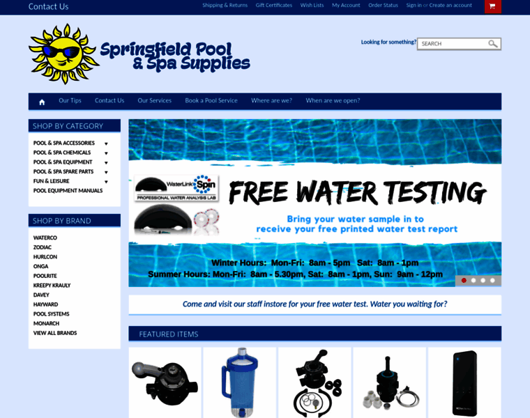 Our location: 24 Commercial Drive, Springfield, Qld 4300; Contact us: Phone: (07) 3288 1033. Mobile: 0423 056 726. Email: office@springfieldpoolshop.com.au; Book a pool service: Book Online or call us on 07 3288 1033. Visit us in store for a Free Water Test