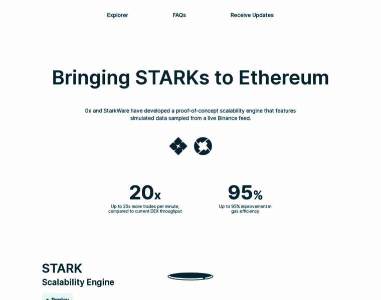 0x and StarkWare have developed a proof-of-concept scalability engine that features simulated data sampled from a live Binance feed