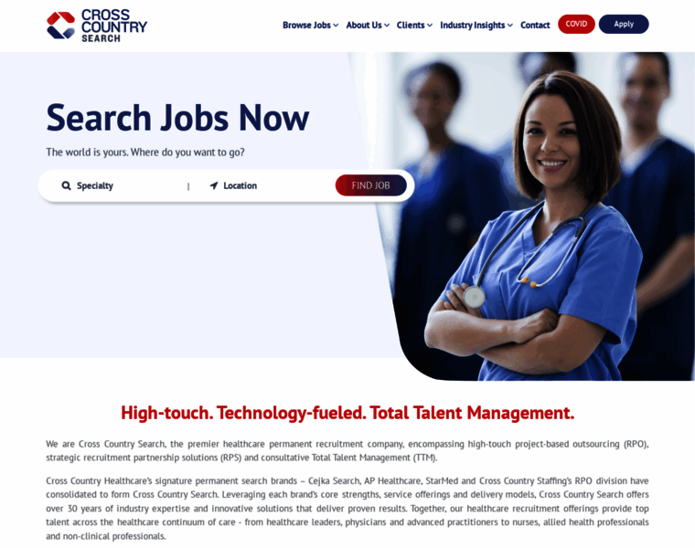 Cross Country Search has over 30 years of industry expertise in permanent healthcare recruitment for physicians and advanced practice positions. Innovation meets experience in healthcare recruiting with Cross Country Search.