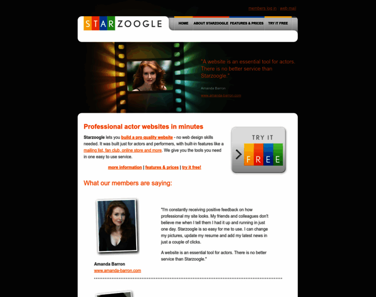 Website design for actors and models - Starzoogle.com