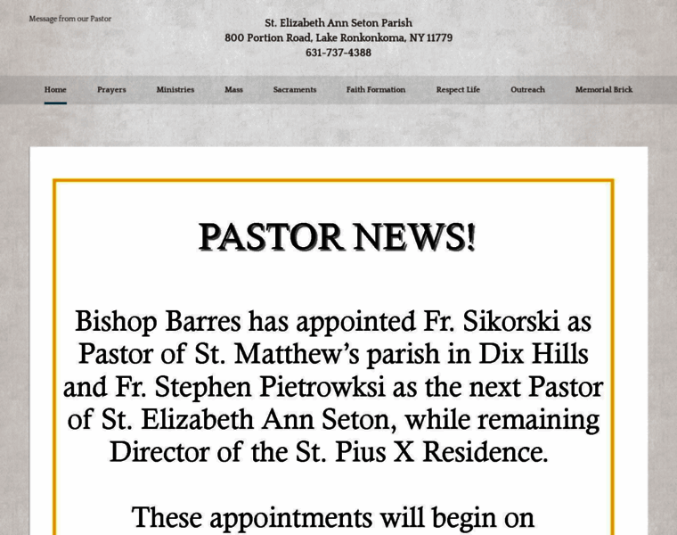 St. Elizabeth Ann Seton Catholic Church, Lake Ronkonkoma, NY | Features include parish news, Mass and Confessions schedule, bulletins, parish calendar, descriptions of all parish programs, sacrament information and much more!