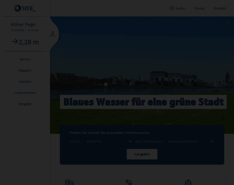 Die StEB Köln sind ein Dienstleistungsunternehmen der Wasserwirtschaft und ein zentraler Baustein der öffentlichen Daseinsvorsorge. Für ein gesundes Lebensumfeld reinigen wir Abwasser, schützen vor Überflutungen und verbessern die Gewässerqualität. Wir machen Bäche und Weiher erlebbar. Wir treiben die Entwicklung einer wassersensiblen und klimaresilienten Stadt voran. Dies tun wir mit unseren kompetenten, engagierten Mitarbeitenden – nachhaltig u...