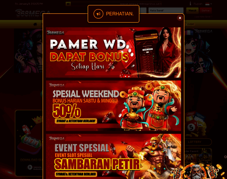 Main di 368MEGA sekarang! Nikmati ribuan game slot online terbaik dengan bonus besar, jackpot mudah, dan peluang menang setiap hari!