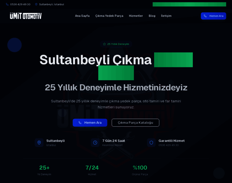 Sultanbeyli'de 25 yıllık deneyimle çıkma yedek parça, oto çıkma parça, far tamiri, tampon tamiri, motor bakımı ve şanzıman değişimi. ÜMİT OTOMOTİV olarak tüm araç markalarına uygun orijinal çıkma parçalar, uygun fiyatlı oto tamiri ve 7/24 yol yardım hizmeti.
